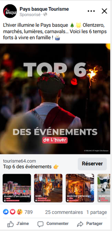 Les campagnes de communication menées en novembre et décembre 2025 sur les marchés de proximité démontrent l’efficacité d’un positionnement renforcé sur l’hiver. Comparées aux actions déployées au printemps et à l’automne — qui ont permis d’installer durablement la destination sur ces périodes — les campagnes hivernales affichent des niveaux d’engagement particulièrement élevés, traduisant une opportunité supplémentaire de développement hors saison.